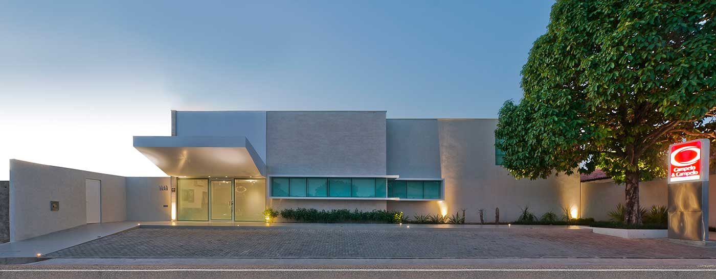 As linhas retas da fachada serviram para dar aquele toque de modernidade ao escritório ...